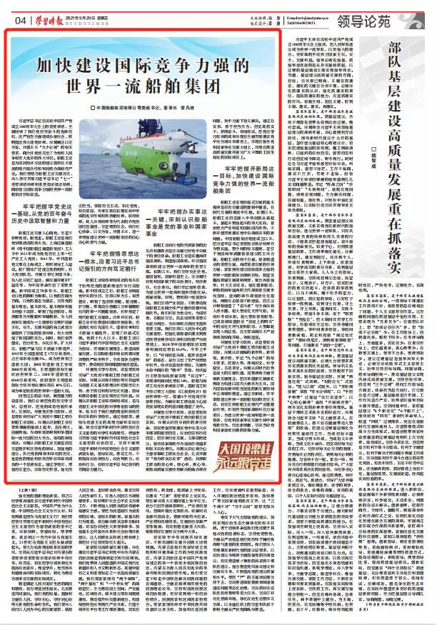 9月29日,《學(xué)習(xí)時報》刊發(fā)中國船舶集團黨組書記、董事長雷凡培署名文章《加快建設(shè)國際競爭力強的世界一流船舶集團》,現(xiàn)全文分享如下。