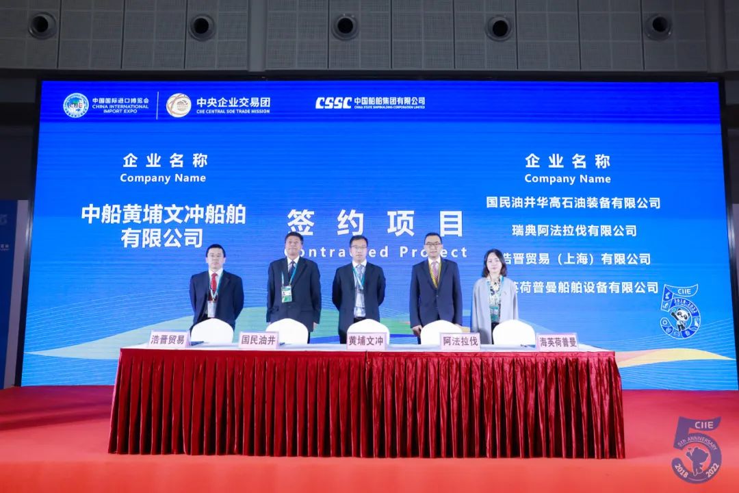 第五屆進(jìn)博會期間,中國船舶集團(tuán)旗下8家企業(yè)與18家國際合作伙伴先后進(jìn)行21個項(xiàng)目的集中簽約,累計(jì)總金額達(dá)4.5億美元,同比增長205.5%。項(xiàng)目涉及柴油機(jī)組、發(fā)電機(jī)組、船用吊機(jī)、通導(dǎo)系統(tǒng)、電力推進(jìn)系統(tǒng)、數(shù)字化網(wǎng)絡(luò)設(shè)備、LNG供氣系統(tǒng)、殷瓦鋼、再液化裝置等船舶建造領(lǐng)域的各類重要配套設(shè)備,為國際交易市場和全球供應(yīng)鏈的日益繁榮貢獻(xiàn)中國船舶力量。