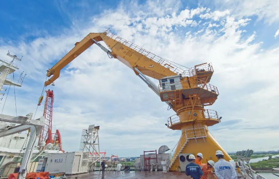 中國船舶集團旗下華南船機為“夢想”號配套重要作業設備——50噸折臂起重機,助力“夢想”起航。