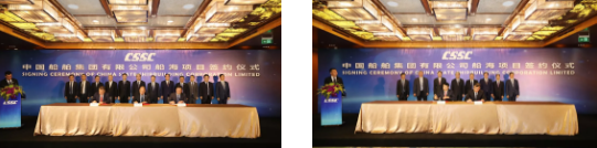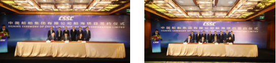????主要簽約項(xiàng)目包括:中國船舶集團(tuán)所屬重慶川東船舶重工有限責(zé)任公司與中遠(yuǎn)海運(yùn)(上海)有限公司1.38萬噸不銹鋼化學(xué)品船項(xiàng)目;中國船舶集團(tuán)所屬大連船舶重工集團(tuán)有限公司與招商輪船VLCC項(xiàng)目;中國船舶集團(tuán)所屬上海外高橋造船有限公司與工銀租賃21萬噸散貨船項(xiàng)目、外高橋造船與EPS公司20.9萬噸雙燃料散貨船項(xiàng)目;中國船舶集團(tuán)所屬江南造船(集團(tuán))有限責(zé)任公司與太平洋氣體公司VLEC項(xiàng)目、江南造船與 SINOGAS86000立方米VLGC項(xiàng)目、江南造船與UECC公司3600車汽車滾裝船項(xiàng)目、江南造船與派格達(dá)克公司22000方乙烯船項(xiàng)目;中國船舶集團(tuán)所屬廣船國際有限公司與斯坦納公司5萬噸甲醇雙燃料油船項(xiàng)目、廣船國際與EPS公司LNG雙燃料蘇伊士油船項(xiàng)目、中國船舶集團(tuán)所屬滬東中華造船(集團(tuán))有限公司與MOL18600立方LNG加注船項(xiàng)目;中國船舶集團(tuán)所屬武船集團(tuán)青島北海船舶重工有限責(zé)任公司與中國船舶集團(tuán)所屬中船租賃21萬噸散貨船項(xiàng)目、中國船舶集團(tuán)所屬中船澄西船舶修造有限公司與國銀租賃85000噸散貨船項(xiàng)目、重慶川東船舶重工與重慶冠達(dá)世紀(jì)游輪650客游輪項(xiàng)目;中國船舶租賃與 Golar LNG 船舶改裝融資租賃項(xiàng)目、中國船舶租賃與SINOGAS86000立方米VLGC融資租賃項(xiàng)目;中船租賃與山東海運(yùn)21萬噸散貨船融資租賃項(xiàng)目、中船租賃與Navig 8 成品油船聯(lián)合投資協(xié)議、中船租賃與新加坡星展銀行VLCC融資協(xié)議。