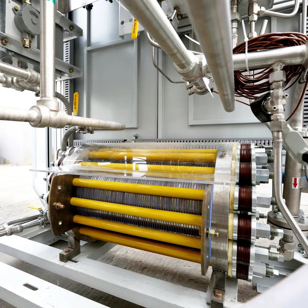 該設備為雙極壓濾式加壓水電解制氫裝置,能夠高效制取氫氣,能耗低、安全性能優(yōu)越,可年均節(jié)省電費百萬元。