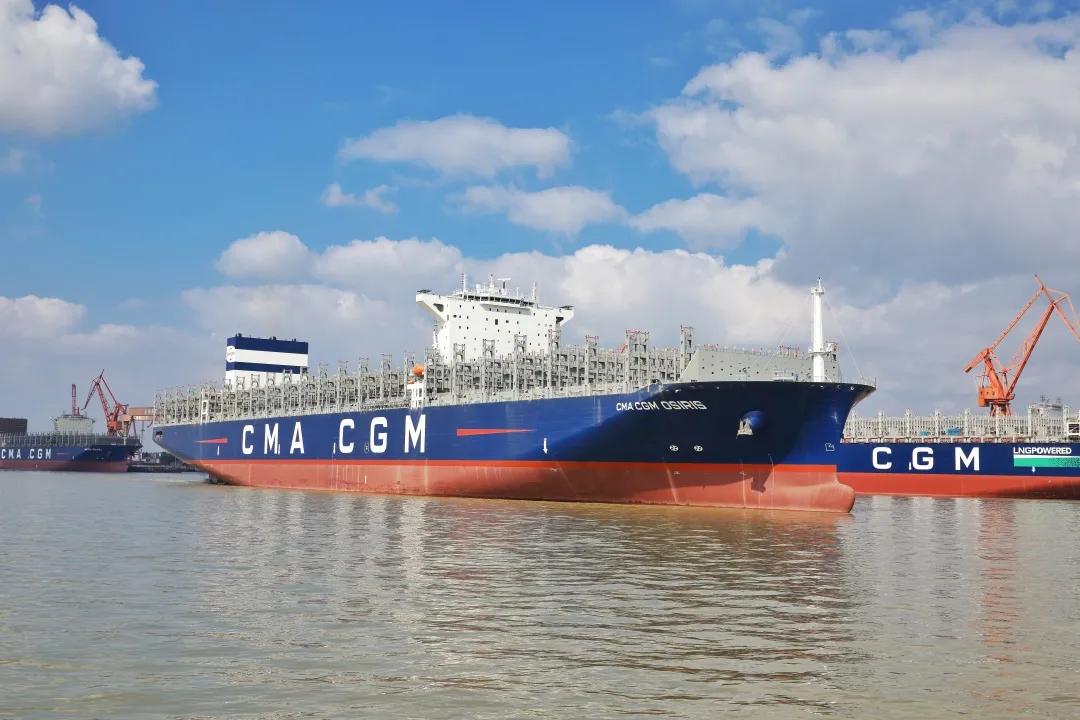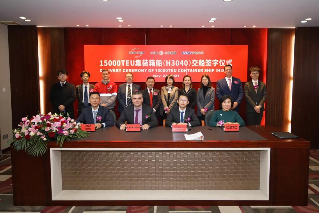 11月24日,中國船舶集團旗下滬東中華為法國達飛海運集團建造的第三艘15000TEU超大型集裝箱船系列船“達飛·奧西里斯”號在上海命名交付。至此,滬東中華提前38天完成2021年度交船任務,昂首邁入2022年。