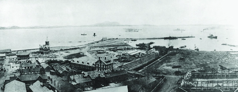 修船南塢始建于1899年,1902年底初建完工,長(zhǎng)116米、寬13米、深7.6米,采用兩開式扉門,并配備電動(dòng)排水泵。