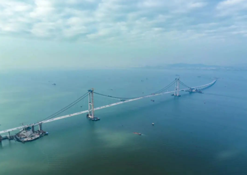 其中伶仃洋大橋為主跨1666米的雙塔三跨懸索橋,是深中通道關鍵控制性工程,建成后將成為世界最高海中大橋、世界最大跨徑海上鋼箱梁懸索橋。
