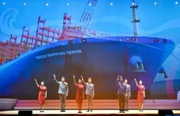 現(xiàn)場,來自中國船船集團江南造船(集團)有限責任公司、滬東中華造船(集團)有限公司、上海外高橋造船有限公司、中船動力(集團)有限公司和中國船舶集團公司第七〇二研究所的青年職工將真實工作案例與理論原文結合,將“發(fā)展新質(zhì)生產(chǎn)力”作為工作方向與指引,將他們的造船故事親身演繹。故事從《船舶青年說》起航,共講述了五大篇章,分別為江南造船如何延續(xù)百年初心、滬東中華造船LNG船毫厘鑄匠心、七〇二所從“蛟龍”號到“奮斗者”號將深潛進行到底、外高橋造船“愛達?魔都號”大型郵輪“4個120天”的極限挑戰(zhàn)、江南造船“鋼鐵心臟”工程師攻克大型作戰(zhàn)艦建造的不凡創(chuàng)新路,臺詞鏗鏘有力、情感真摯流淌,繪就了一幅精彩的中國船舶夢畫卷。
