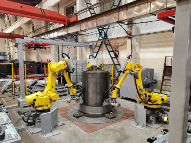 近日,中國船舶集團旗下杰瑞自動化承研的定子鐵芯疊裝機器人工作站項目通過驗收并投入使用,實現(xiàn)了大型高壓異步電機關鍵配套——定子鐵芯的自動化生產(chǎn)。