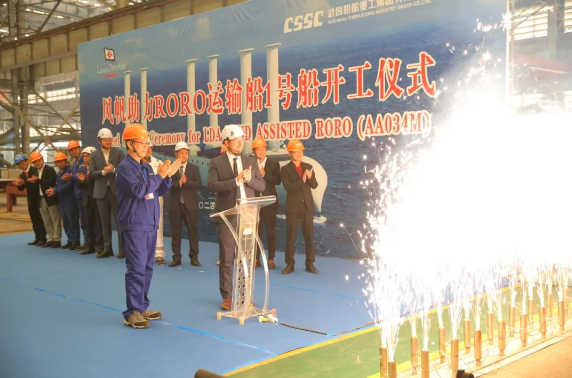 10月24日,中國船舶集團(tuán)旗下武昌造船為法國路易達(dá)孚航運(yùn)集團(tuán)公司(LDA)建造的風(fēng)帆助力滾裝(RORO)運(yùn)輸船首制船順利開工。