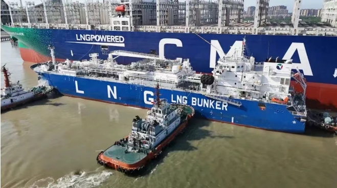 6月20日,全球首款江海直達型LNG加注船“淮河能源啟航”號在上海長興島順利完成對全球首艘23000TEU雙燃料超大型集裝箱船“達飛 雅克·薩德”號的LNG燃料補給作業(yè)。這兩艘不同領域的“冠軍”船舶均由中船集團旗下滬東中華建造,兩船首次“牽手”,為航運業(yè)綠色低碳發(fā)展留下佳話。