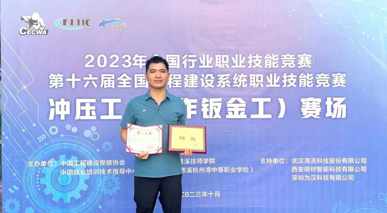在技能競賽舞臺上,鄒彬是公認的“金牌教練”。自2014年起,他連續擔任第43至47屆世界技能大賽全國選拔賽建筑金屬構造項目廣東省隊教練組長。在他的悉心指導下,培養選手累計榮獲省級及以上獎項21項。鄭江華等4人入選世賽國家集訓隊,謝藝科、吳志平等6人奪得省級職業技能大賽第一名,鄭江華等人獲評“全國技術能手”“廣東省技術能手”。2023年,他本人也在全國行業職業技能競賽中斬獲“沖壓工·冷作鈑金工”項目銀獎,并獲評“全國工程建設系統技術能手”。