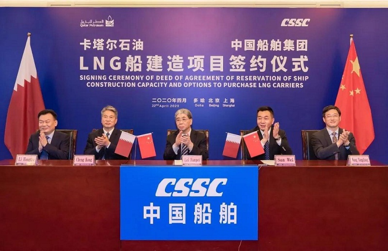 ????4月22日,中國船舶集團與卡塔爾石油公司在中國北京、上海及卡塔爾多哈三地以“云簽約”方式聯合簽署“中國船舶—卡塔爾石油液化天然氣(LNG)船建造項目”協議,所涉訂單總金額超過200億元人民幣。這是卡塔爾天然氣項目首批訂單,也是中國船企迄今承接的金額最大的造船出口訂單。中國船舶集團和卡塔爾石油將強強聯手,依托各自優勢在能源運輸、裝備制造及全球化服務等領域開展廣泛合作。