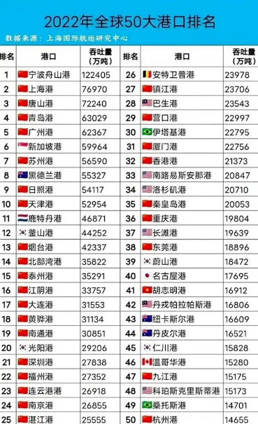 △2022年全球港口吞吐量排名