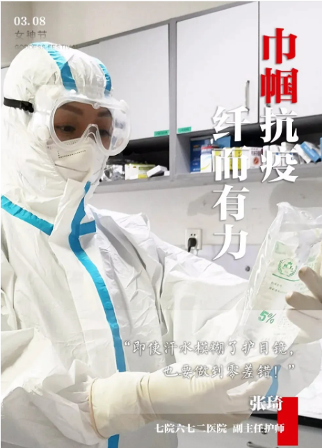 ????張琦,現(xiàn)為六七二醫(yī)院感染三科臨時黨支部黨員,感染三科護(hù)士長。她在1月26日,湖北六七二中西醫(yī)結(jié)合骨科醫(yī)院被征為“新冠肺炎”定點(diǎn)收治醫(yī)院時,第一時間寫下請戰(zhàn)書上陣一線。雖然骨折尚未痊愈,仍帶領(lǐng)全科護(hù)士投入到緊張而又忙碌的病房改造準(zhǔn)備工作中,搬運(yùn)設(shè)備、物資,常常加班到深夜,以實際行動展現(xiàn)了醫(yī)者大美和巾幗大愛的高尚品格及別樣風(fēng)采!